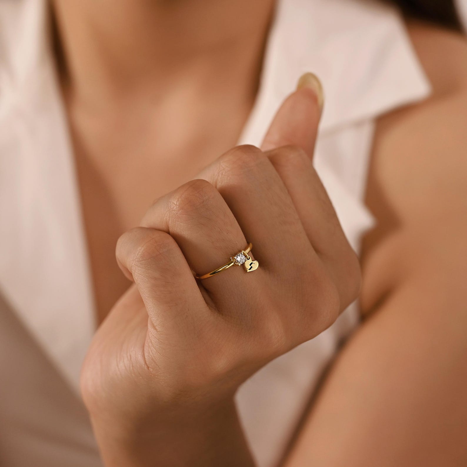 Dangle Heart Charm - The charming dangle heart adds a playful and romantic element to the ring, symbolizing love and connection. It’s a beautiful reminder of cherished relationships, making it a special addition to any jewelry collection.