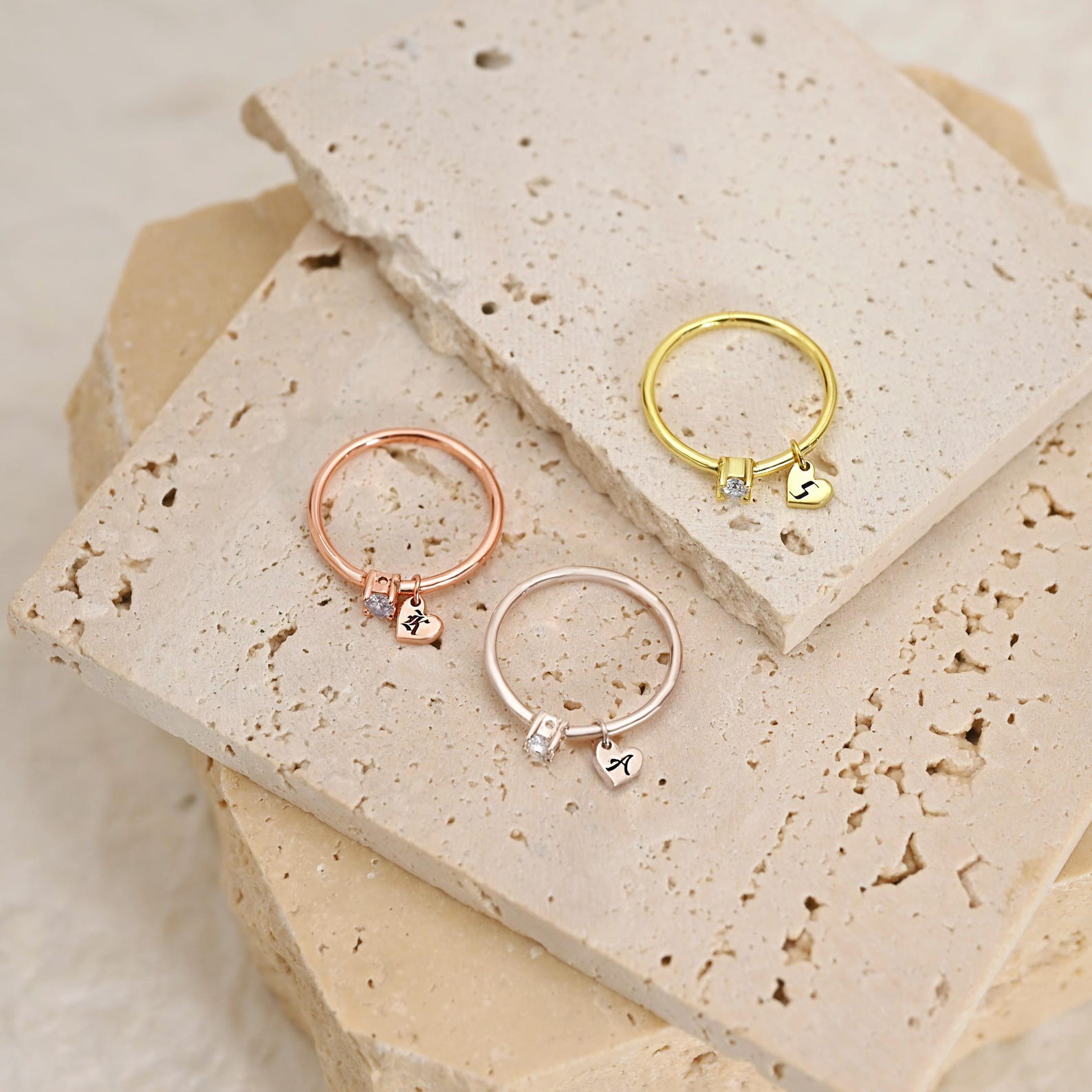 | Style | Custom Birthstone Engraved Initial Ring with Heart Charm |