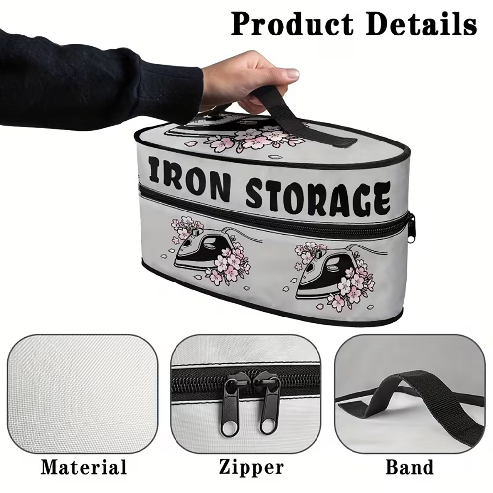 Cherry Iron Storage Bag – A stylish carrying case featuring delicate cherry blossom patterns and bold lettering. The floral design adds a touch of elegance to everyday household tools.