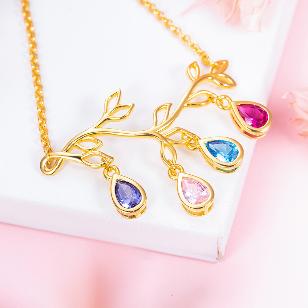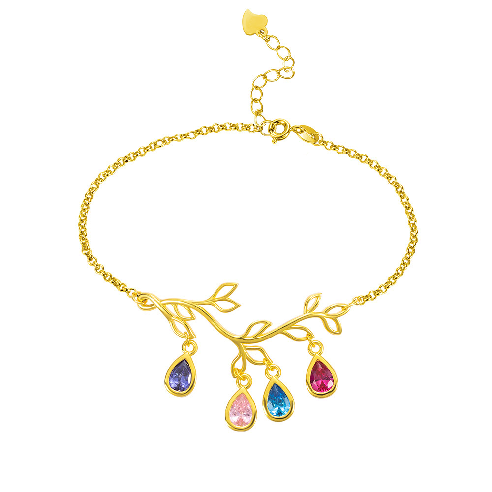 This bracelet is one of our classic family tree birthstone jewelry series. The branches on the bracelet represent the family, and the leaf-shaped birthstones on the branches represent family members. The number of birthstones can be selected according to the number of family members. The color of the stone can also be matched with the birthday of family members. This is the best gift for mother!