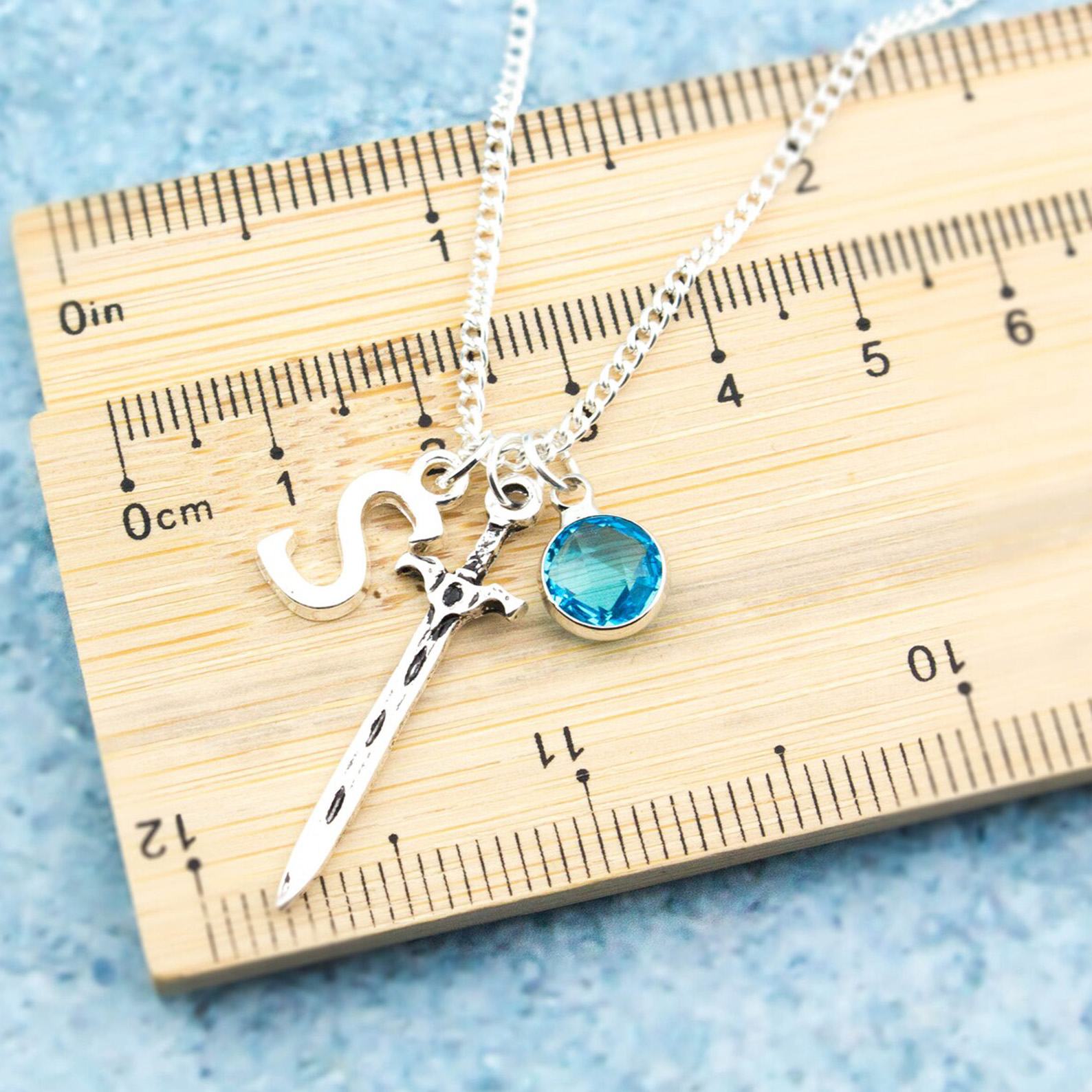 Style Custom Initial & Birthstone Sword-Shaped Pendant Necklace