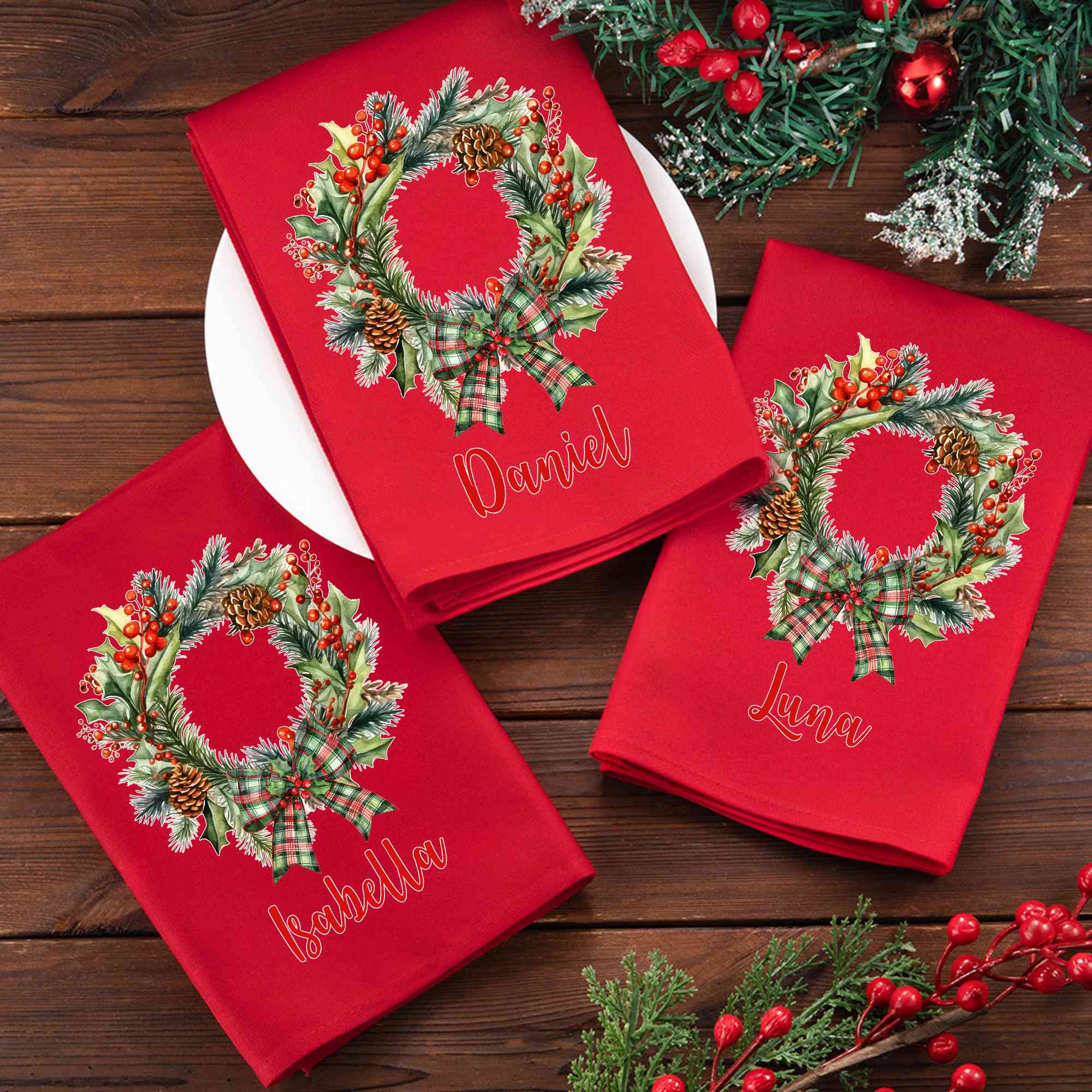 Personalized Name - Each napkin can be customized with a family name or individual name, creating a thoughtful and personal touch. It’s a lovely way to make every guest feel special or to showcase your family’s holiday spirit with a unique keepsake.