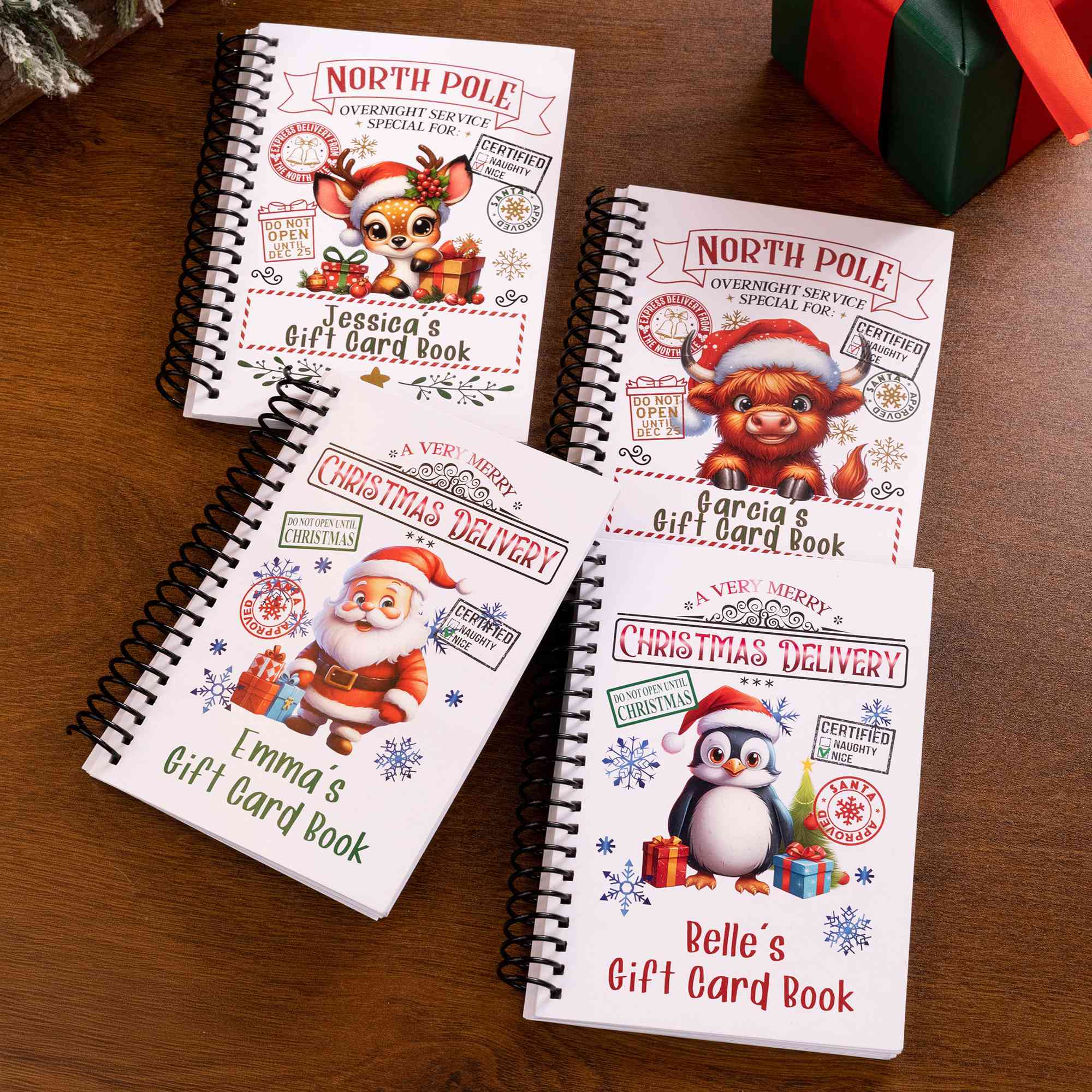 Festive Christmas Design - Each Custom Name Spiral Christmas Gift Card Book is beautifully illustrated with cheerful holiday characters such as a Christmas cow, reindeer, penguin, or Santa Claus. The fun and festive cover design adds a joyful touch to the season, bringing smiles every time you open it.