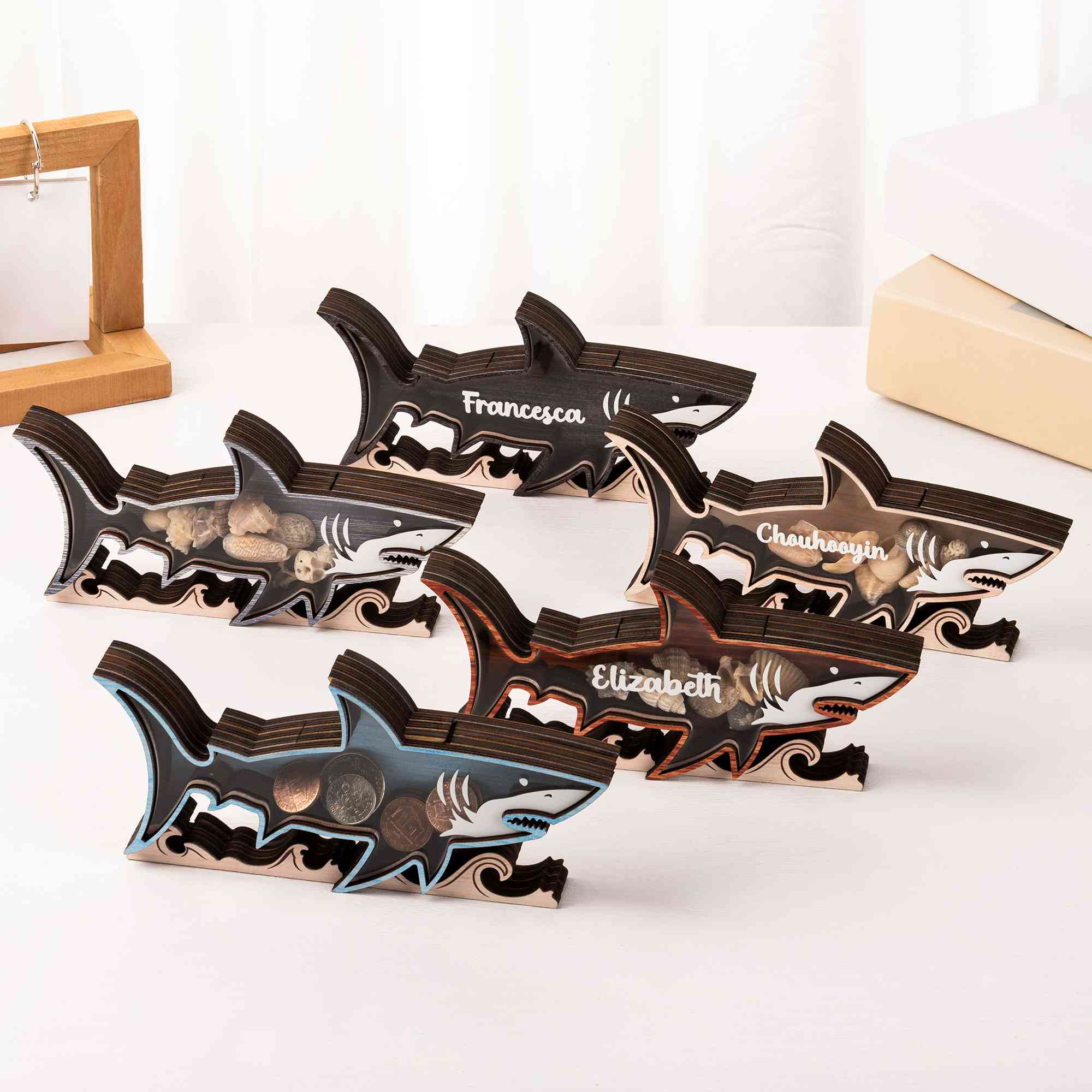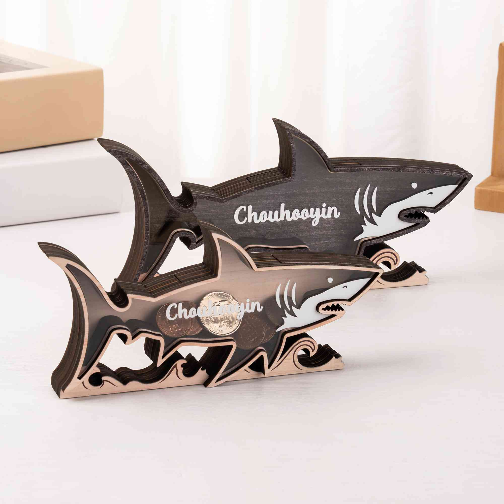 | Style | Custom Name Wooden Shark Shape Storage Box |