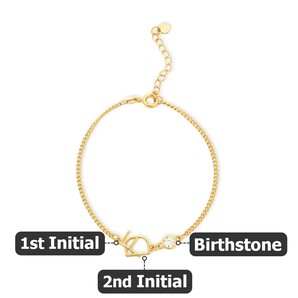 Style Custom Two Initials Bracelet with Birthstone