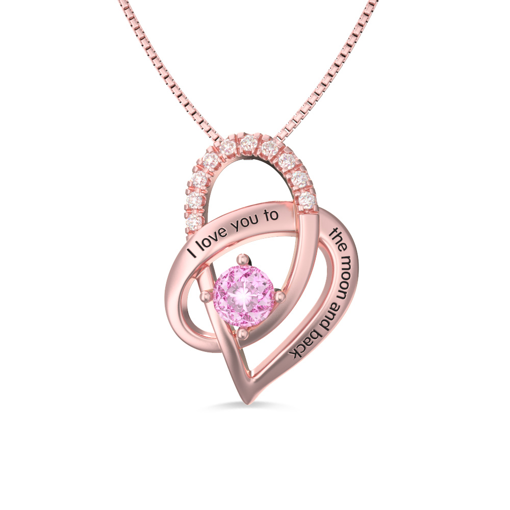 This I Love You To The Moon and Back Heart Charm Necklace in hand-finished sterling silver with unique detail symbolizes everlasting connections. Share this sweet pendant to be worn and cherished always. Add a custom birthstone on the heart pendant to make it one-of-a-kind. Lavish love on yourself or a loved one with this delicate heart pendant. An elegant expression of love.
