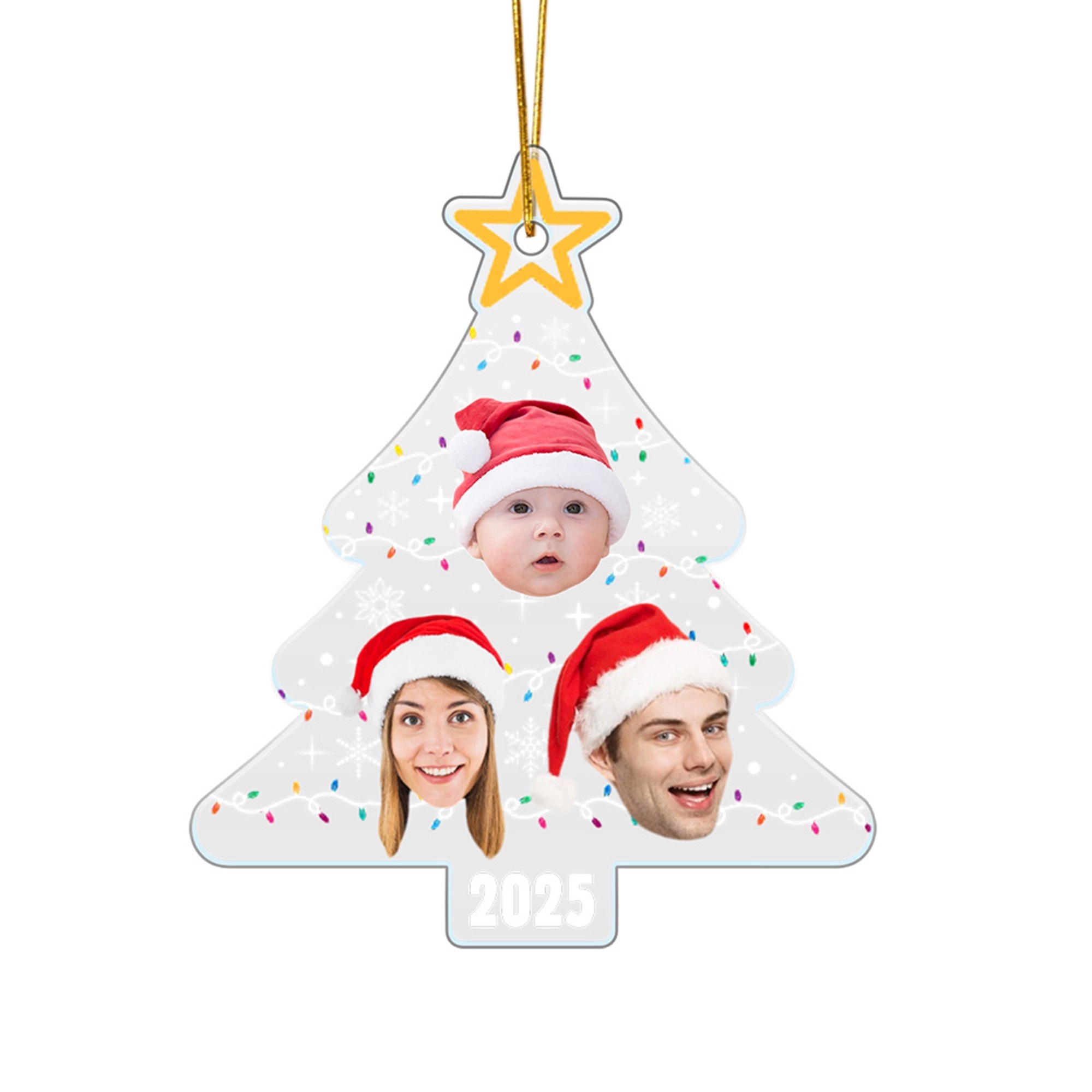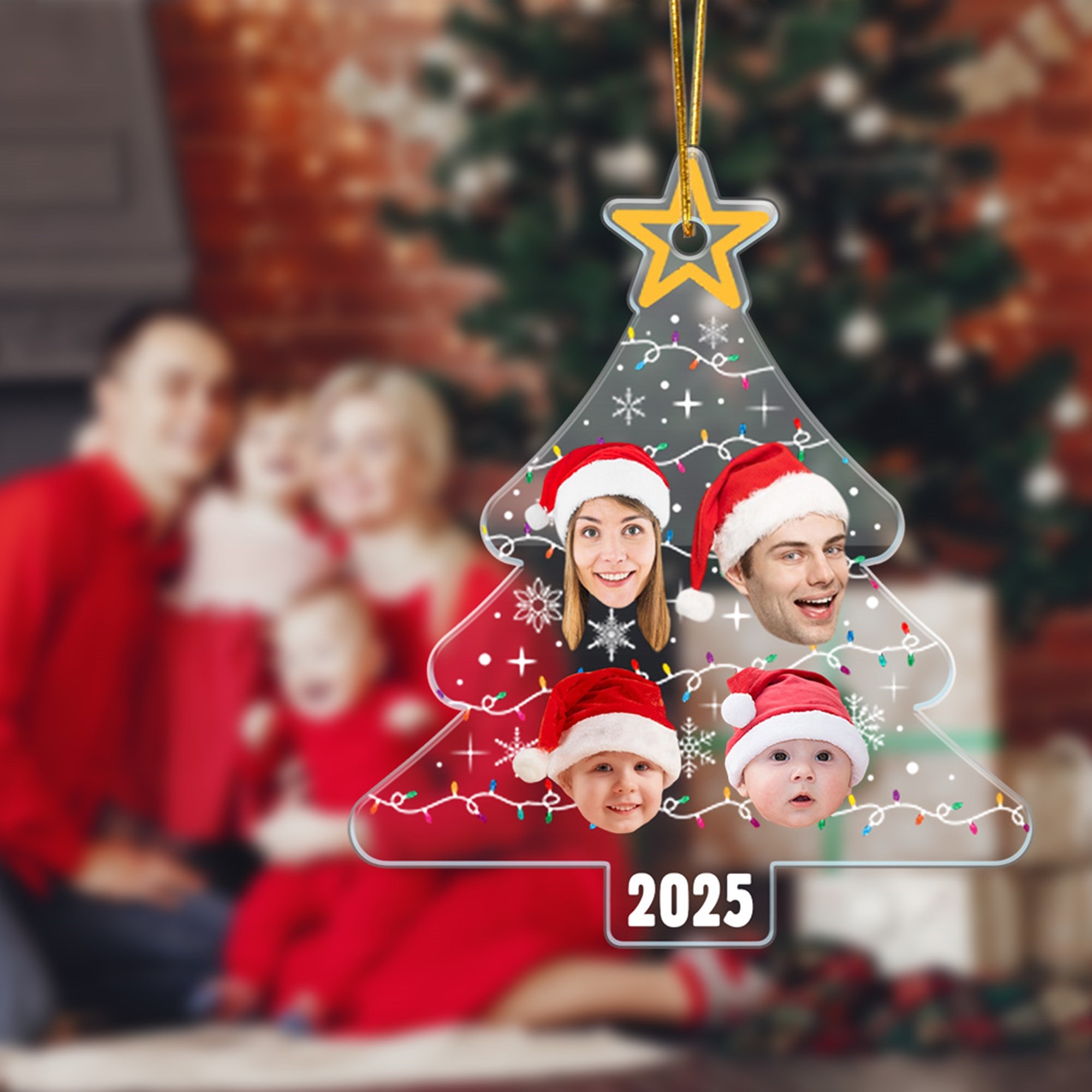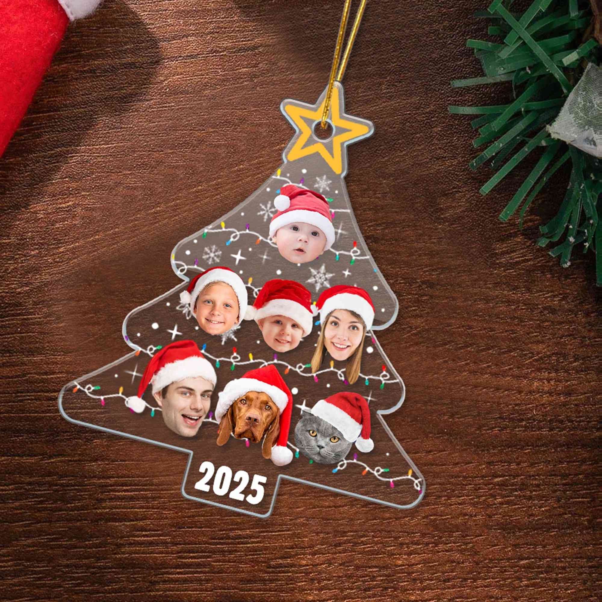 Personalized 1-9 Face Photos Christmas Tree Shape Ornament, Acrylic Holiday Tree Hanging Decor, Home Decor, Christmas Gift for Family/Friends