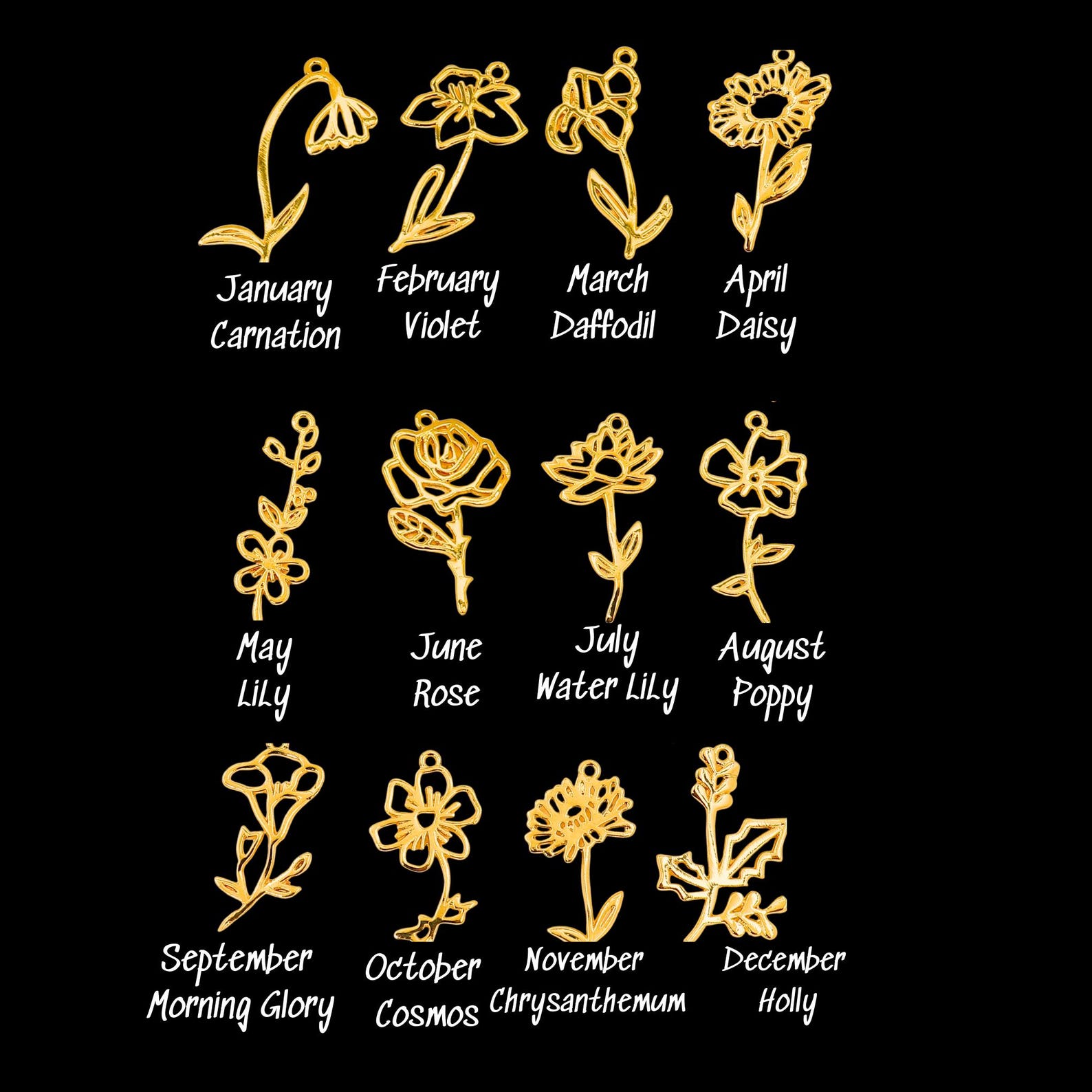 Custom Letter & Birth Details – Includes your chosen initial, a floral charm representing your birth month, and a colorful gemstone matching your birthstone—crafted to reflect your unique story.