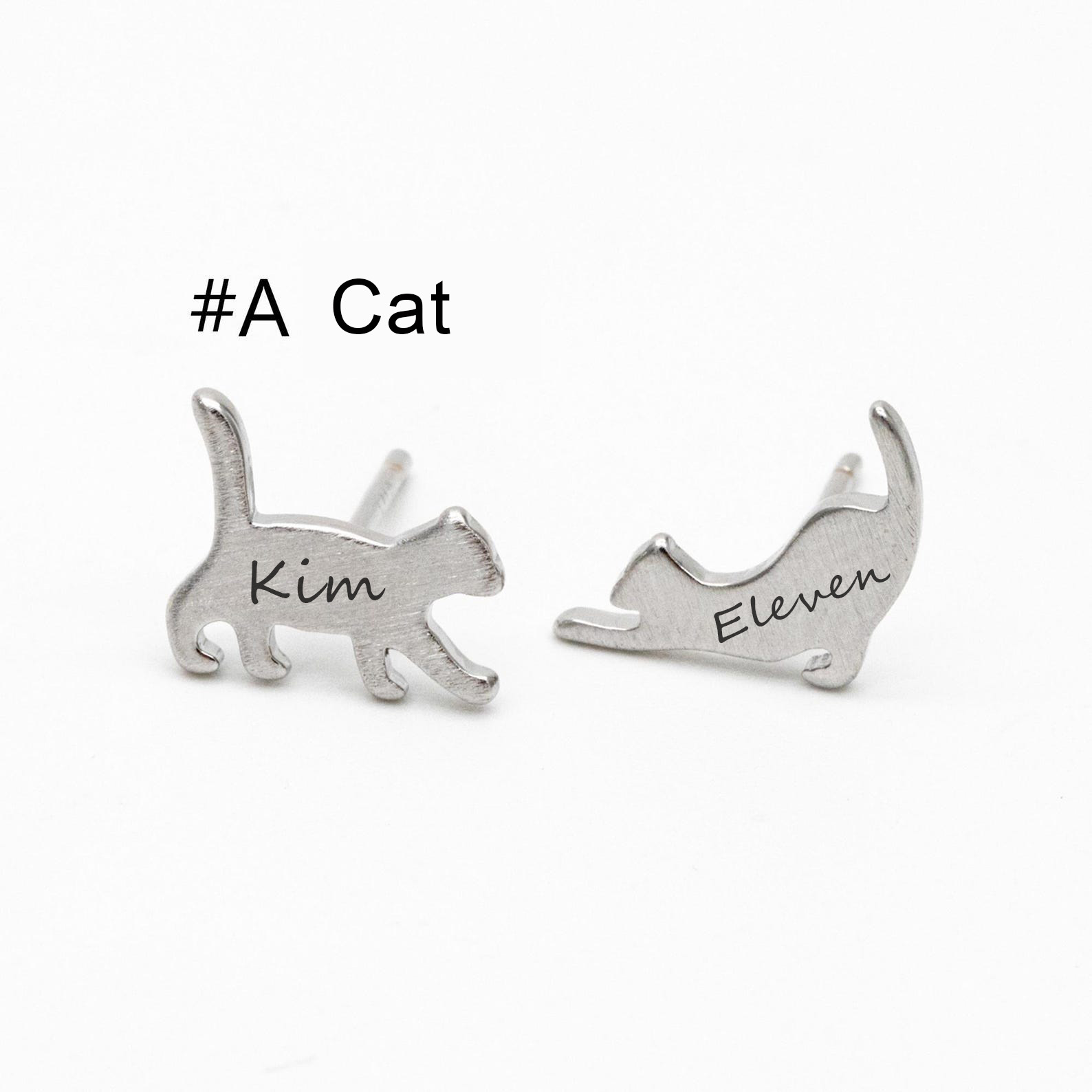 Style Personalized Cat/Dog Asymmetry Earrings with Double Names