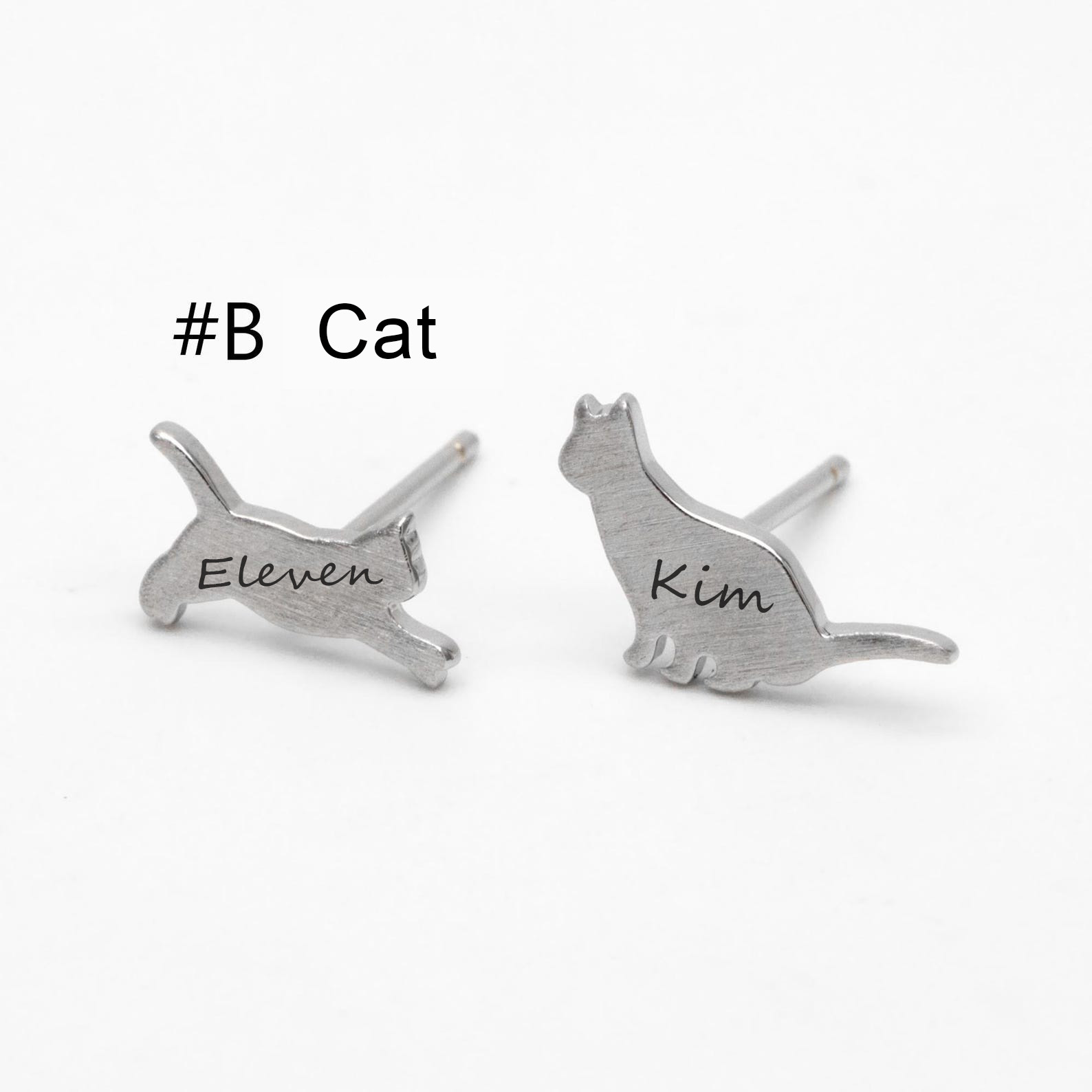 Personalized Cat/Dog Asymmetry Earrings with Double Names, Sterling Silver 925 Cute Cat/Dog Stud Earrings, Birthday/Christmas Gift for Her/Cat & Dog Lovers/Owners