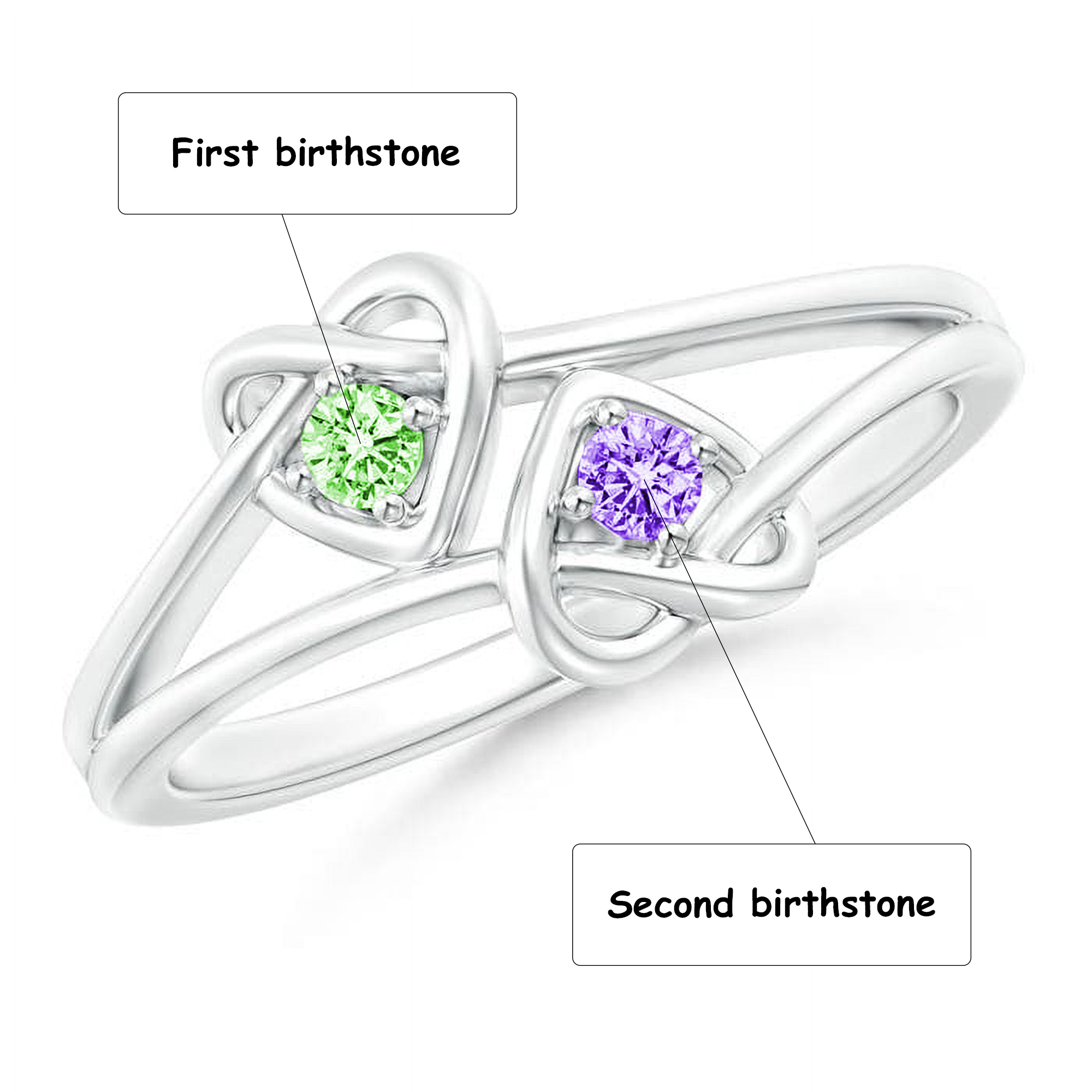 Elegant Design - This stunning sterling silver 925 ring features interlocking hearts adorned with two beautiful birthstones. The design symbolizes love and connection, making it a perfect gift for someone special.