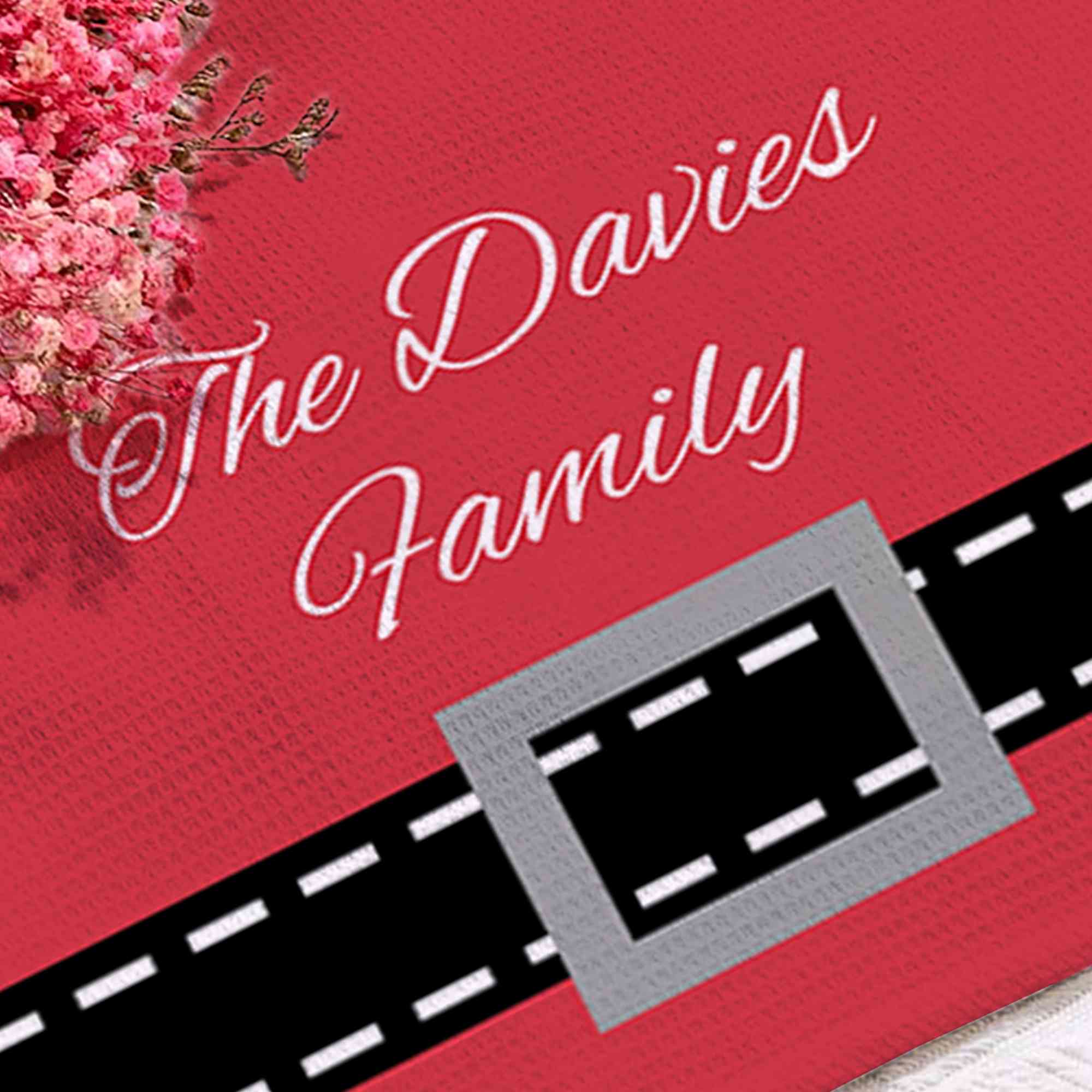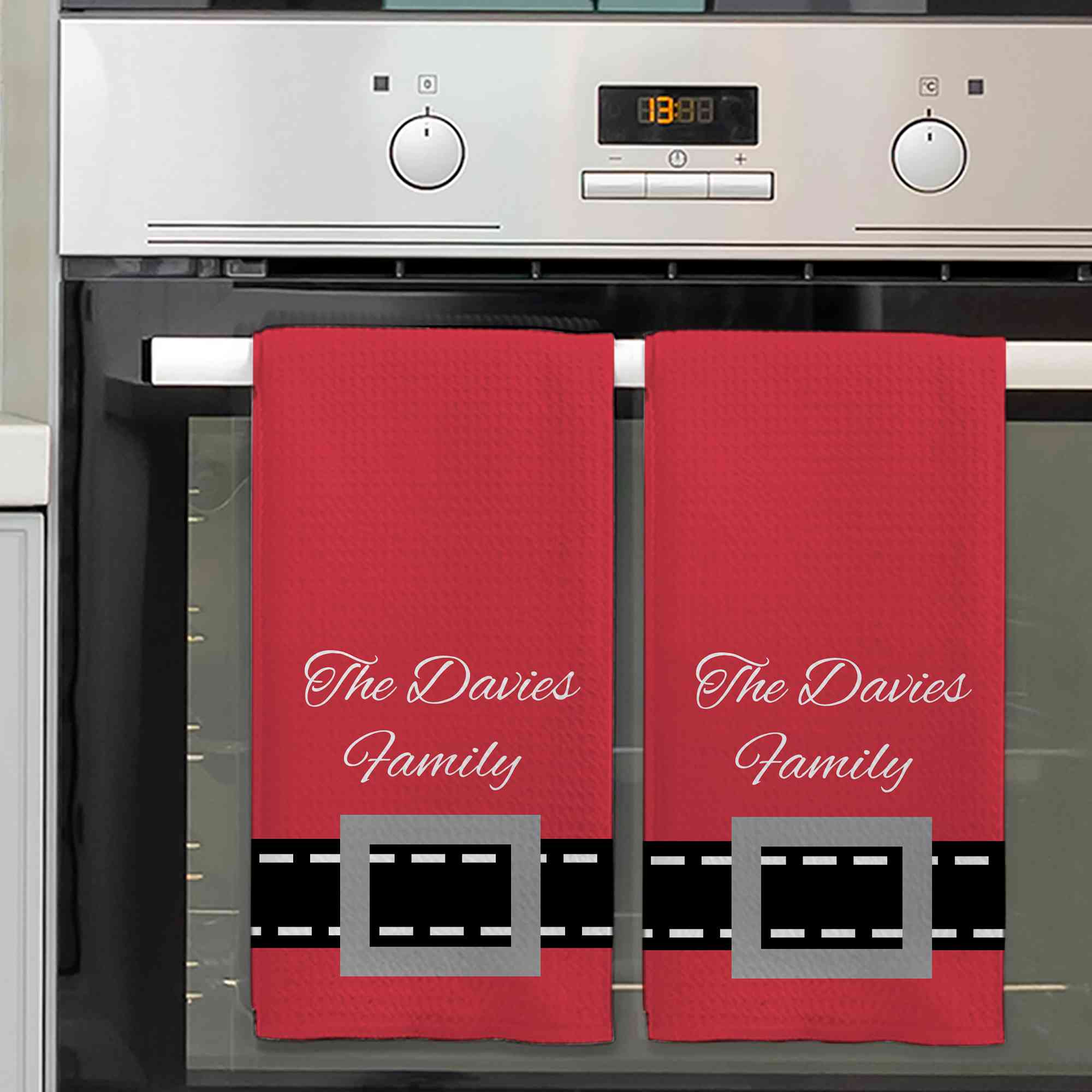 Personalized Full Color Santa Belt Waffle Weave Dish Towel with Name, Absorbent Kitchen Towel, Housewarming/Christmas Gift for Hostess/Mom/Family