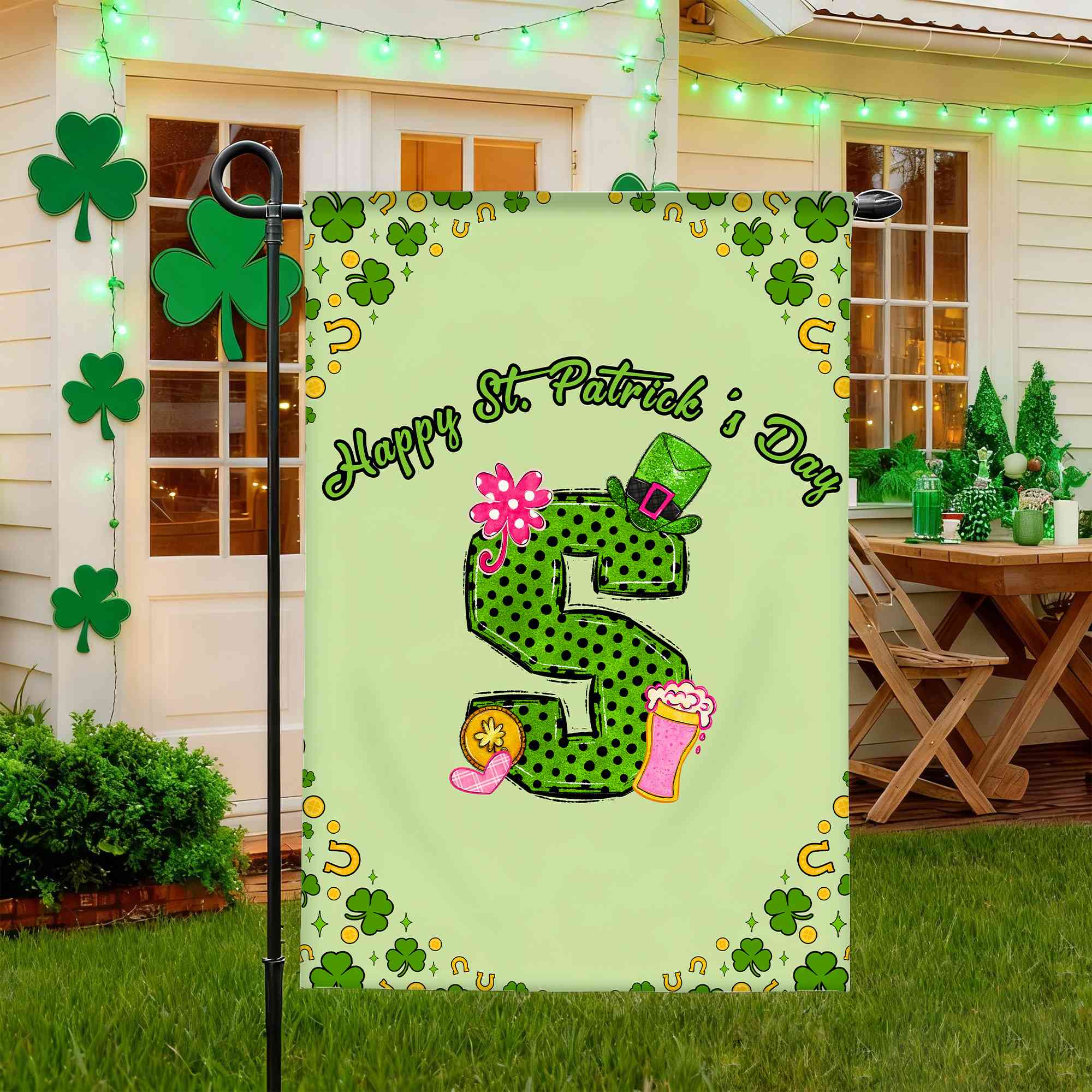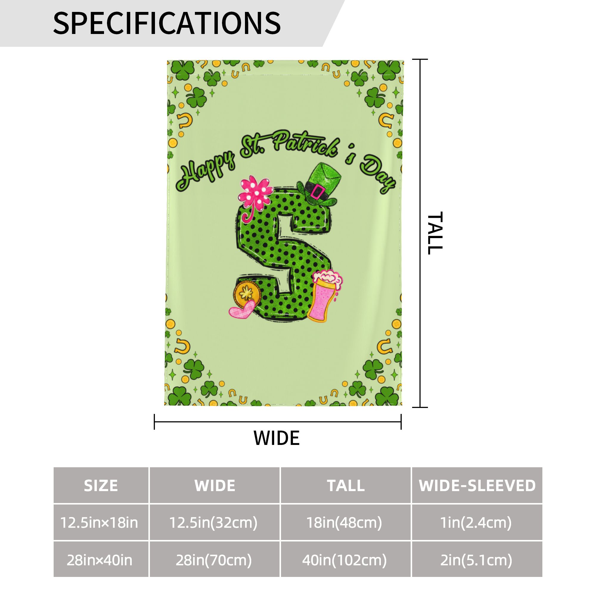 Charming Alphabet Design - This garden flag features a cheerful green polka dot alphabet paired with lucky shamrocks, bringing a cute and colorful touch to your yard. Its playful style adds a bright St. Patrick’s Day mood to any outdoor space.