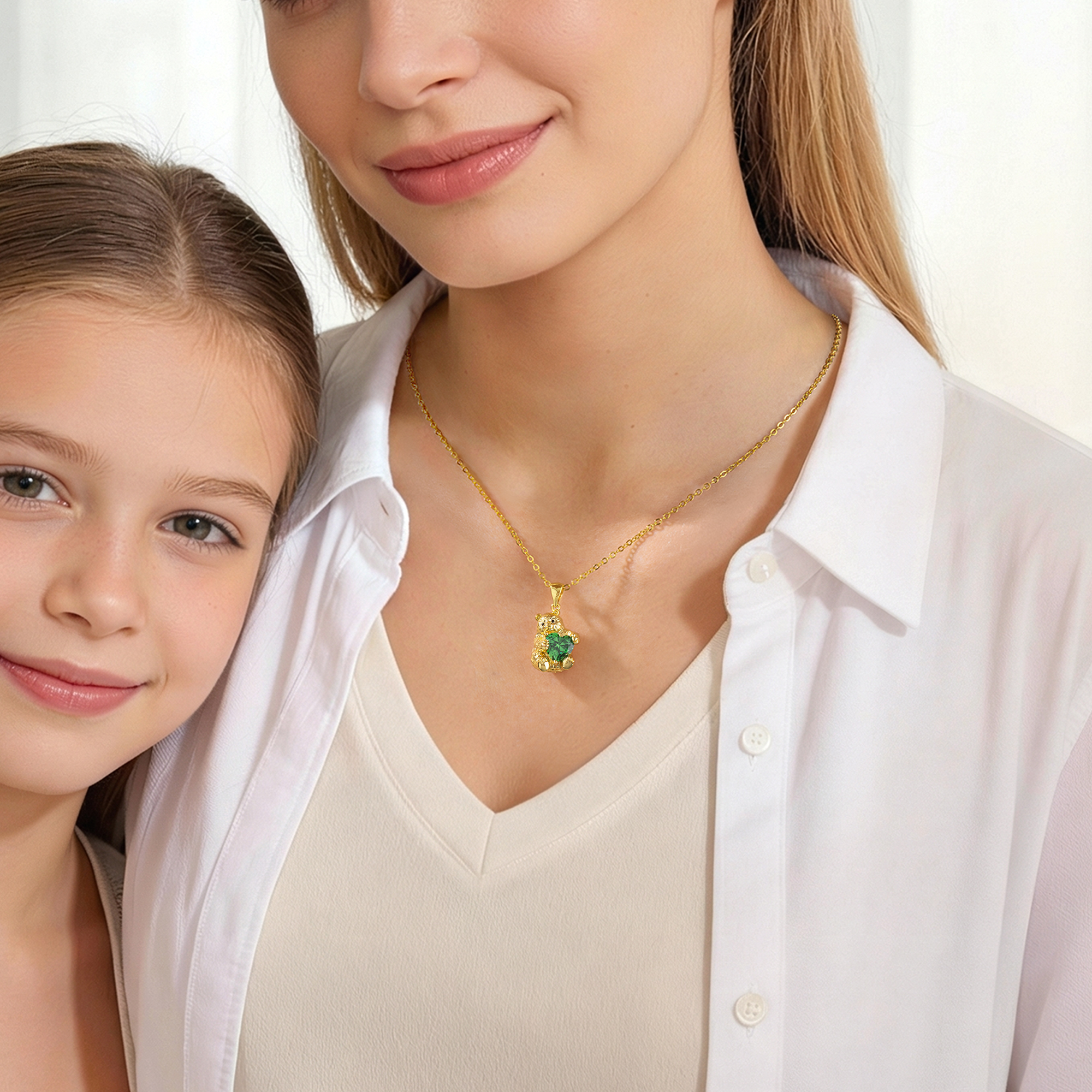 Mama Bear Design - This necklace features a sweet mama bear charm paired with a sparkling heart birthstone, symbolizing the warmth, strength, and endless love of a mother. Its delicate and meaningful design adds a charming touch to everyday outfits while celebrating the special bond between mom and child.