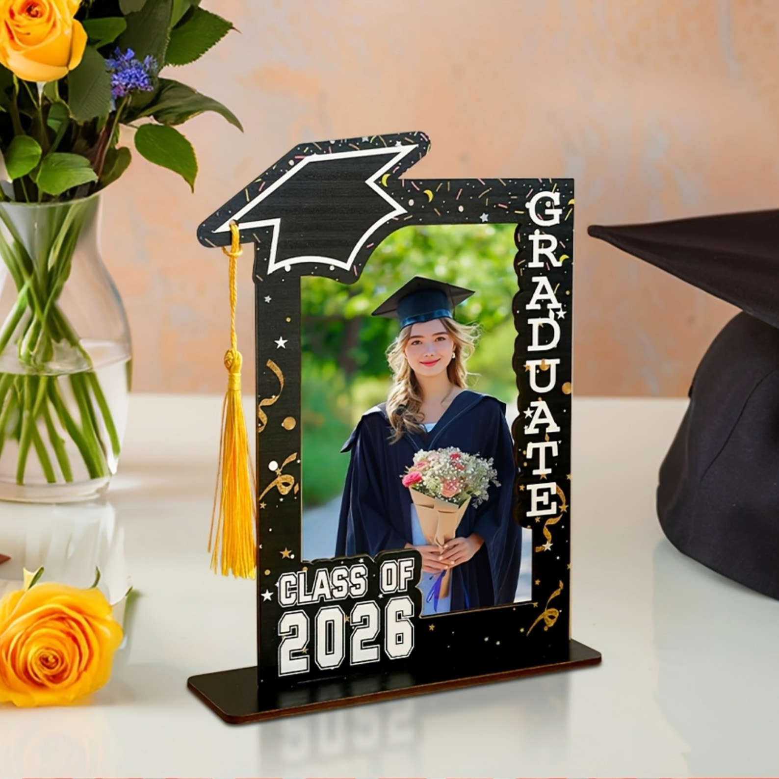 Perfect Graduation Decor - Ideal for displaying at graduation parties, ceremonies, or as a permanent keepsake on your desk. It’s great for showcasing graduation photos, candid shots, or diploma pictures, adding a festive touch to any room.