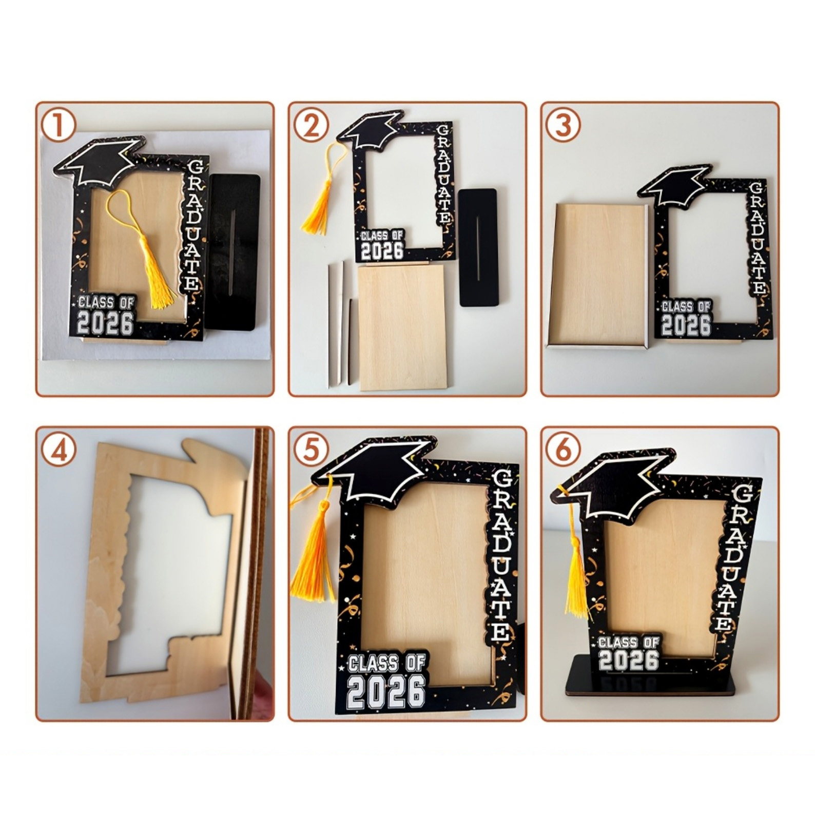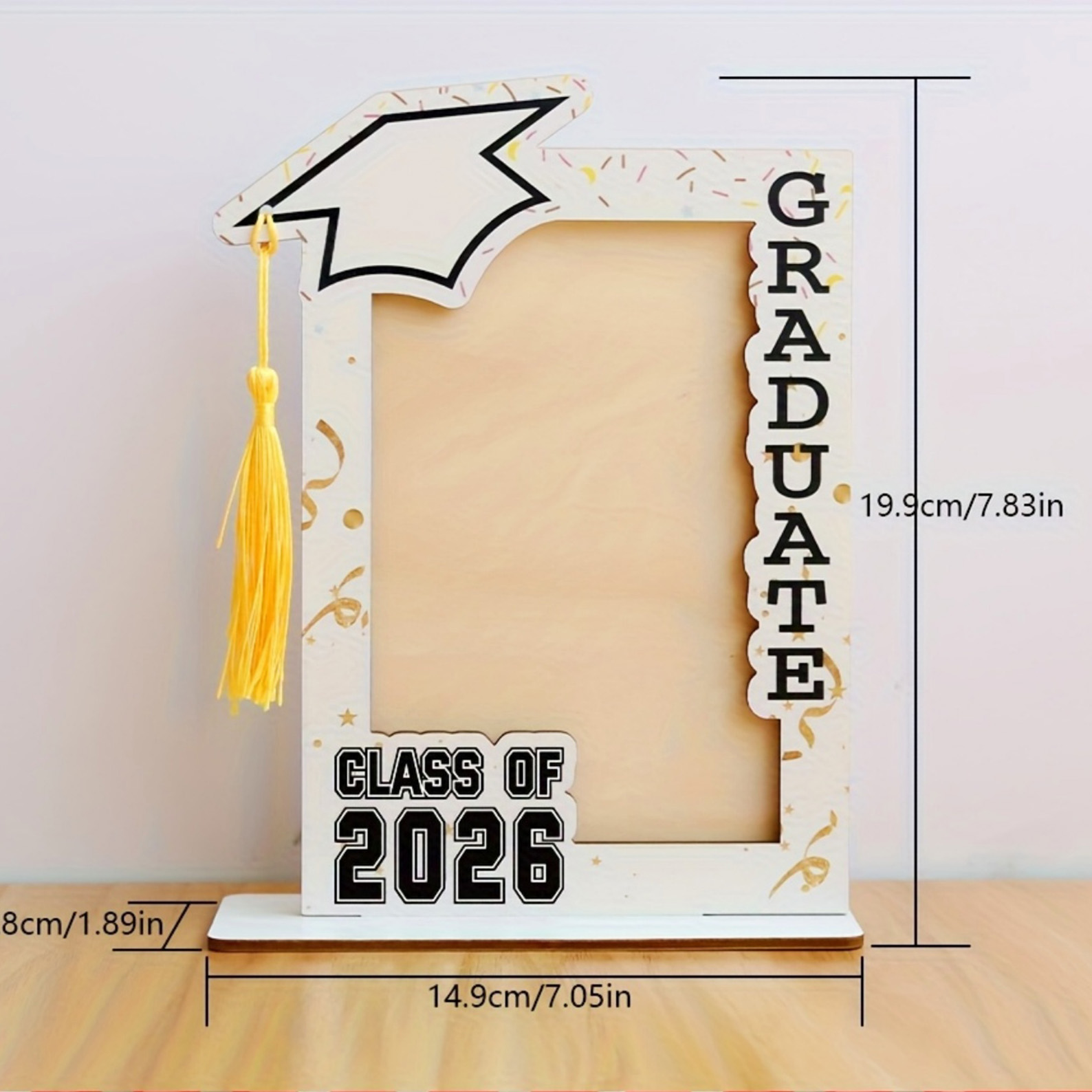 Smooth & Sturdy Build - Crafted from natural wood with a smooth, polished finish, this frame is durable enough to hold your favorite graduation photo for years. The stable base keeps it upright on any shelf or desk, while the crisp printed details stay bright and clear.