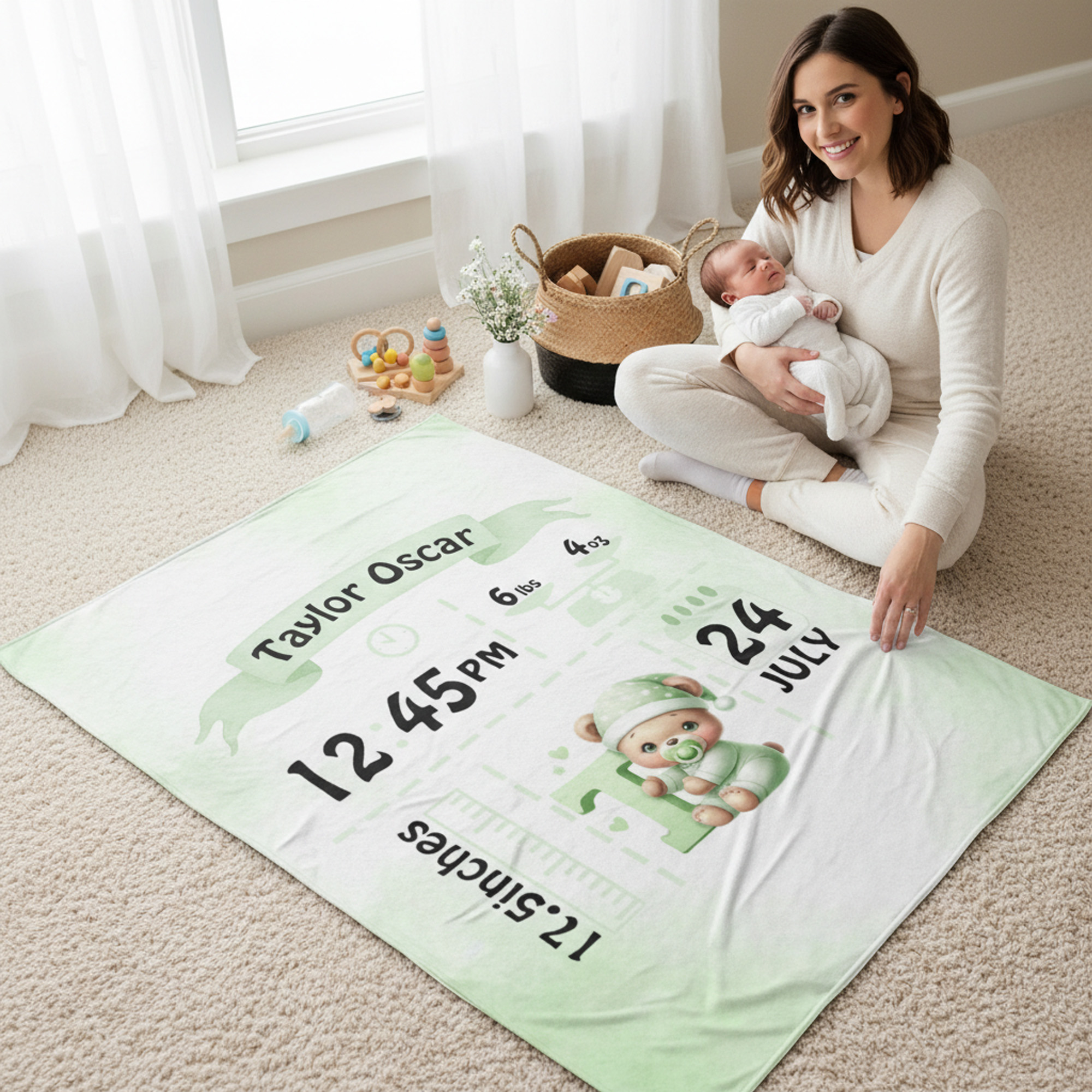 Personalized Birth Details - The blanket can be customized with the baby’s name and birth stats such as date, time, weight, and length. This personal touch turns a simple blanket into a meaningful keepsake that captures the special moment a little one entered the world.