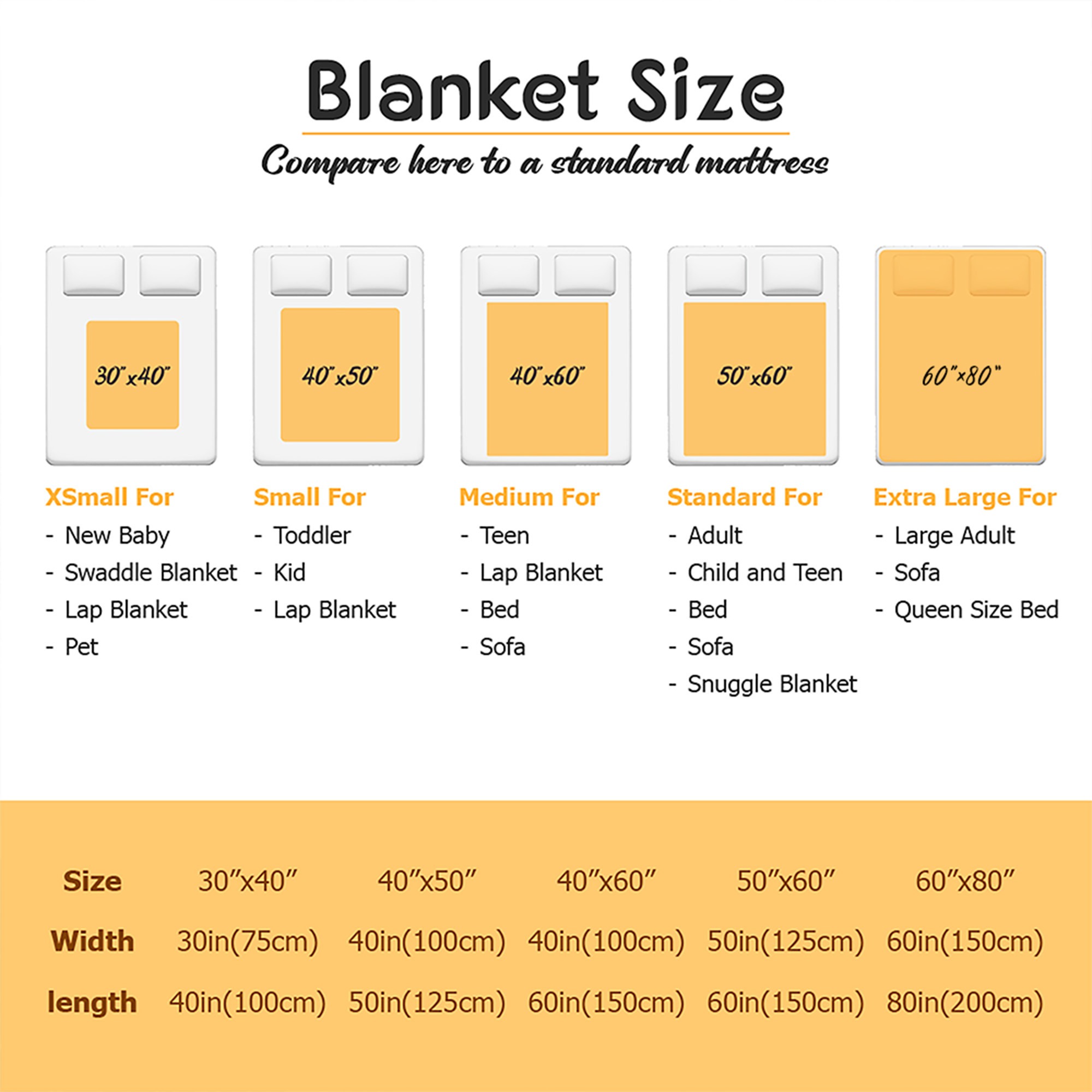 | Measurements | Flannel: 75*100CM(30*40INCH), 100*125CM(40*50INCH), 100*150CM(40*60INCH), 125*150CM(50*60INCH), 150*200CM(60*80INCH); Sherpa: 100*125CM(40*50INCH), 125*150CM(50*60INCH), 150*200CM(60*80INCH) |