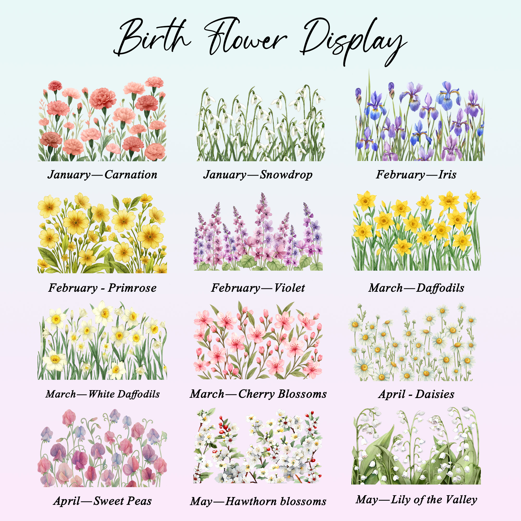 Birth Flower Design - The front of bag features a delicate birth flower illustration arranged in a simple, modern layout. Each flower represents a specific birth month, bringing symbolic meaning along with a soft, graceful style that feels both personal and timeless.
