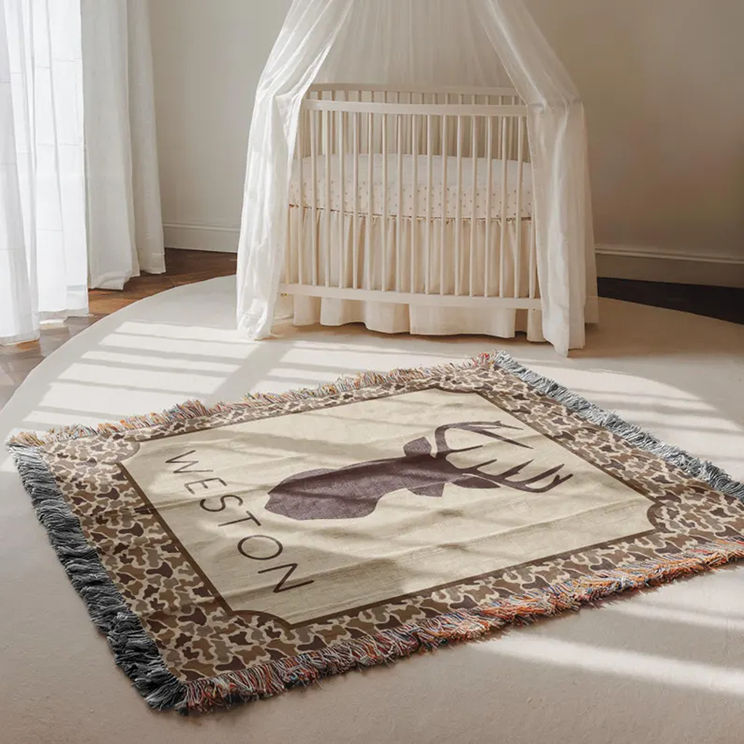 Personalized Name - Customize the central name in clean, modern lettering; font is deeply woven—not printed—for lasting durability and texture. Ideal for newborns, toddlers, or kids who love nature, hunting traditions, or family legacy.