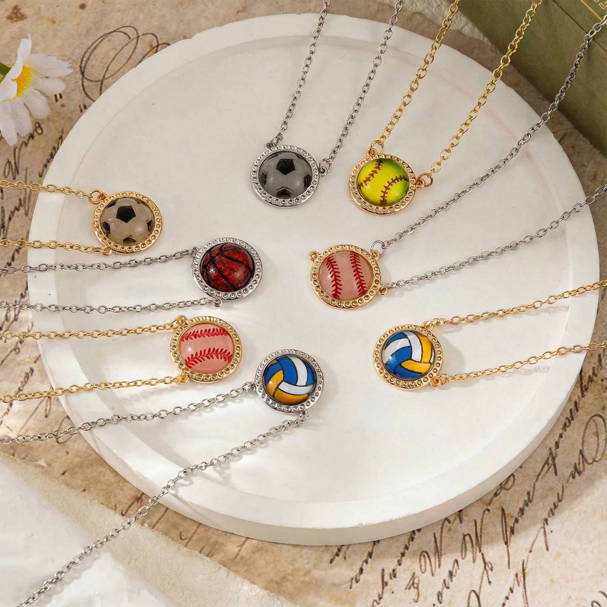 Sport-Inspired Pendant – This stylish necklace features a round pendant with a vibrant epoxy resin design of your favorite sport—baseball, basketball, soccer, or volleyball—capturing the bold colors and textures of the ball. The glossy finish adds depth and shine, making it a fun and eye-catching tribute to athletic passion.