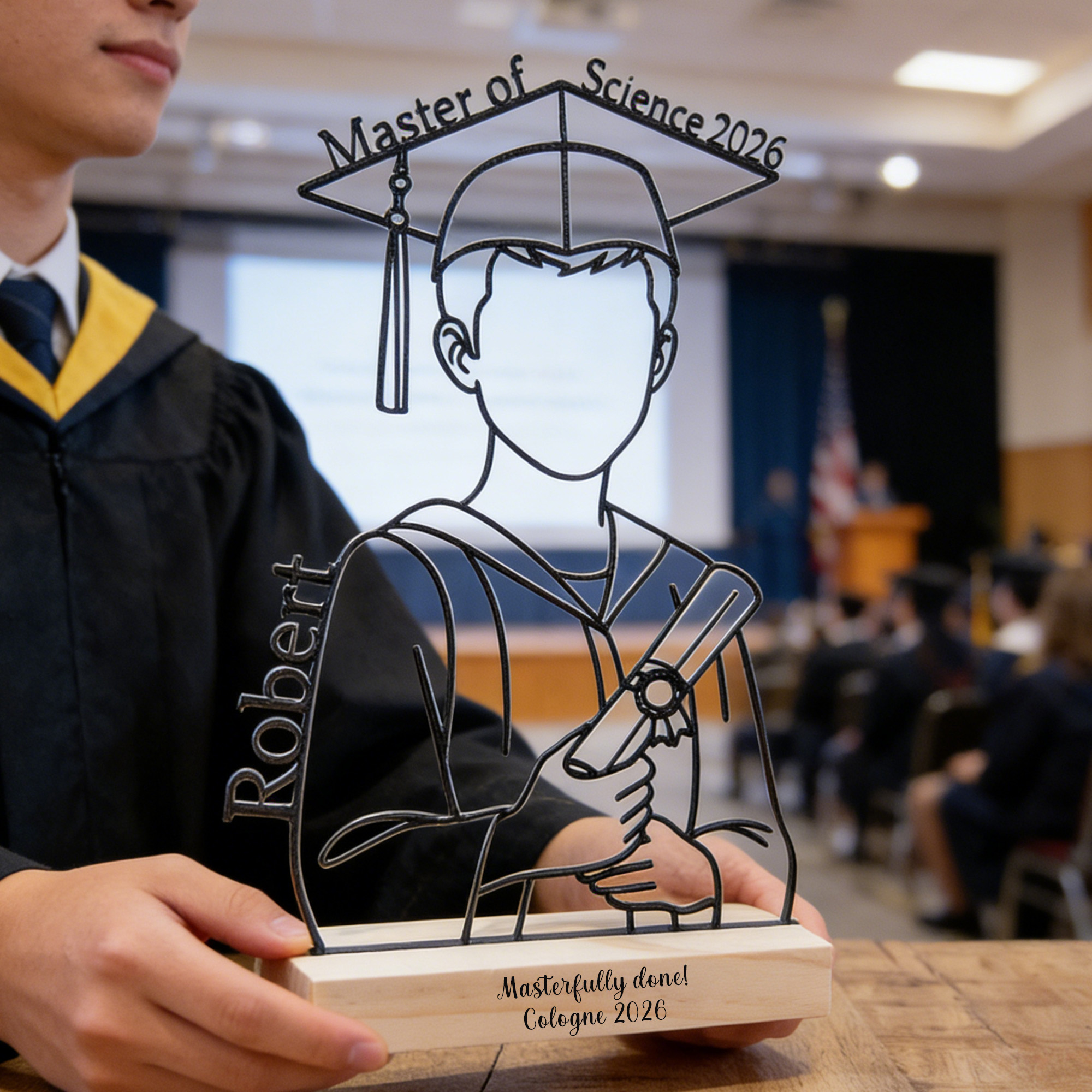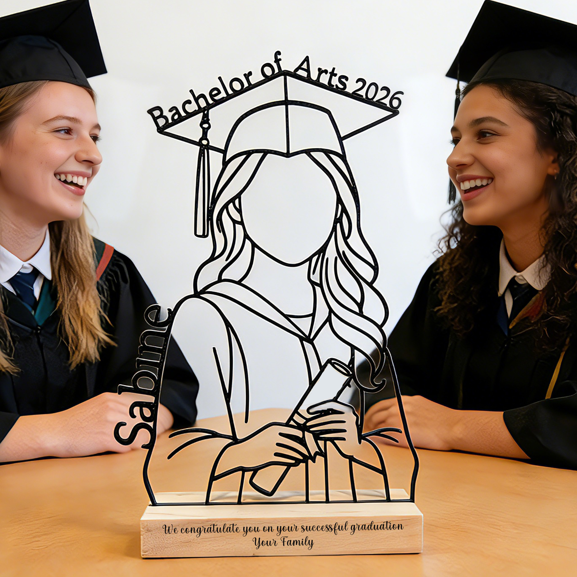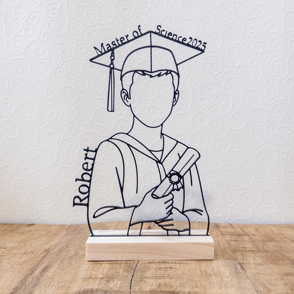 | Style | Personalized Name Line Art Graduation Sculpture with Wooden Engraved Base |