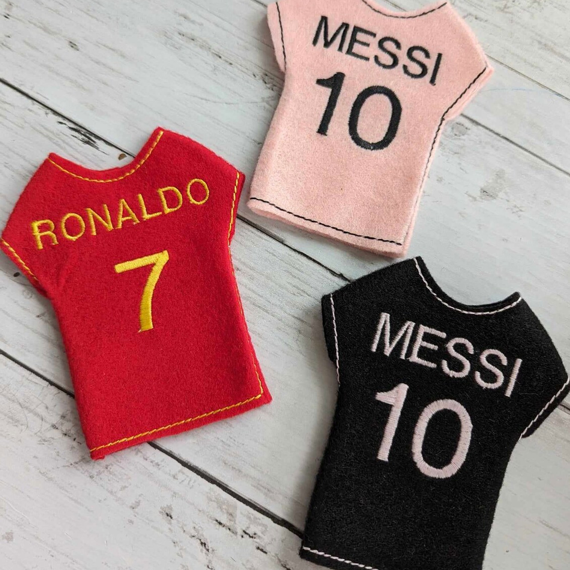 Personalized Name & Number Soccer Elf Sweater, Colorful Felt Football Elf Mini Sweater, Holiday Elf Prop, Christmas Gift for Kids/Soccer Lovers