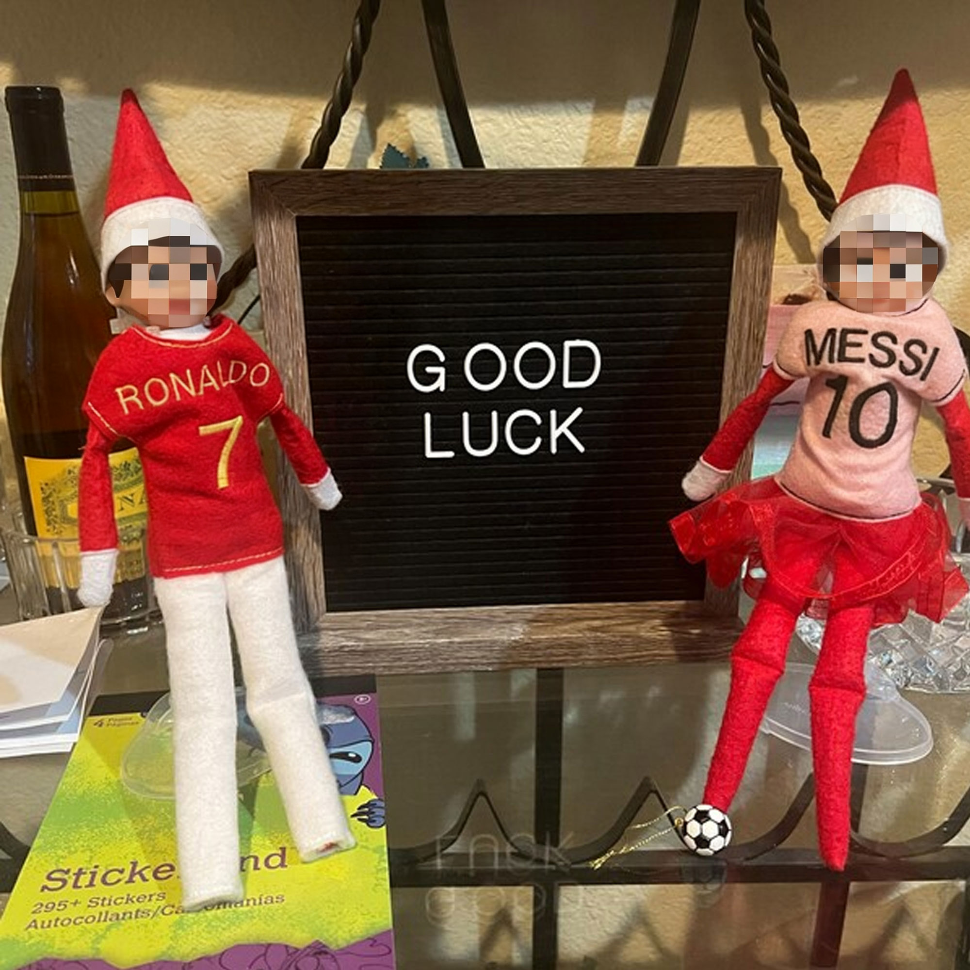 Soccer Elf Design - This festive mini sweater showcases a playful soccer elf design, perfect for celebrating the holiday season. With vibrant colors and a charming aesthetic, this sweater adds a whimsical touch to your decorations. It’s an adorable way to blend holiday cheer with a love for soccer.