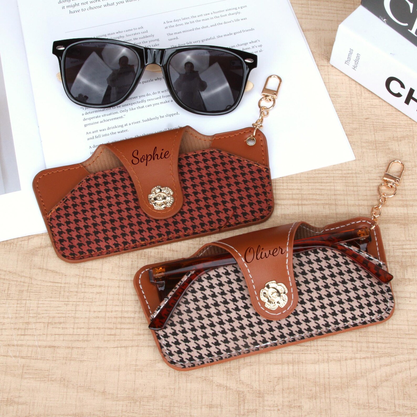Stylish & Personal - This elegant glasses case features a classic plaid pattern with a soft leather exterior and a decorative camellia flower accent. Customize it with a name for a thoughtful, personalized touch that adds charm to everyday essentials.
