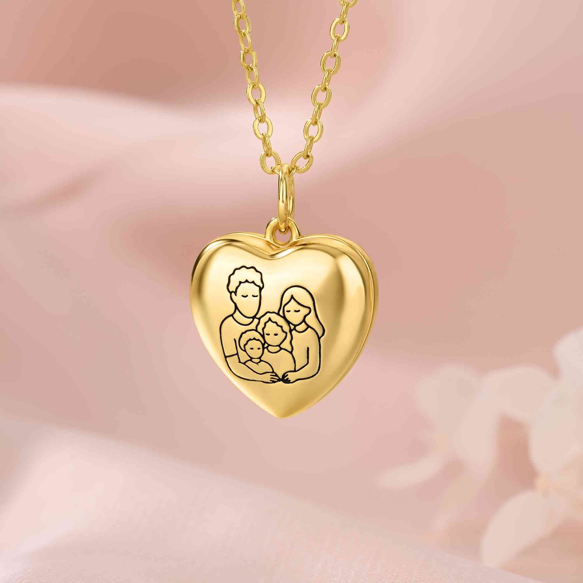 Heartfelt Locket Design - This elegant heart locket necklace features a personalized photo in the locket and delicate family line art on the surface, symbolizing love, connection, and treasured memories. Its timeless heart shape adds a sentimental touch, creating a meaningful keepsake that keeps loved ones close every day.