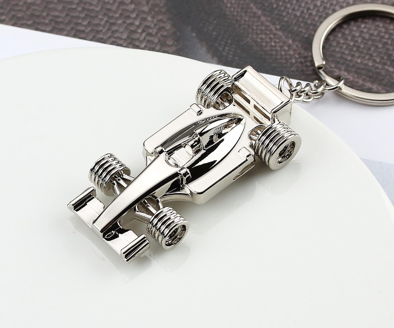 Custom Racing Car Keychain – This sleek, metallic keychain features a detailed race car design with realistic wheels and aerodynamic bodywork. It’s a stylish accessory for motorsport lovers who appreciate precision engineering.