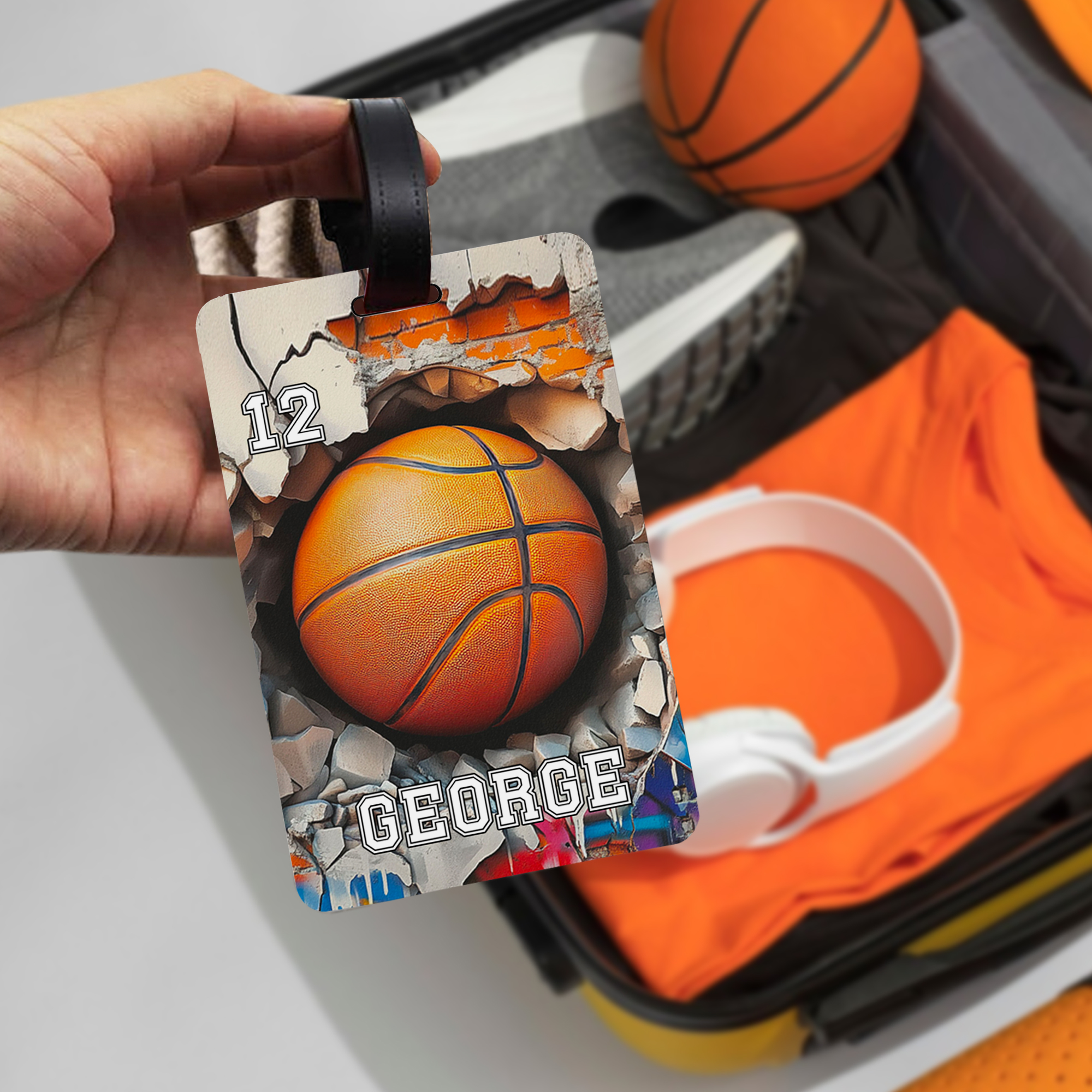 | Style | Personalized Sports Ball Luggage Tag with Name & Number |